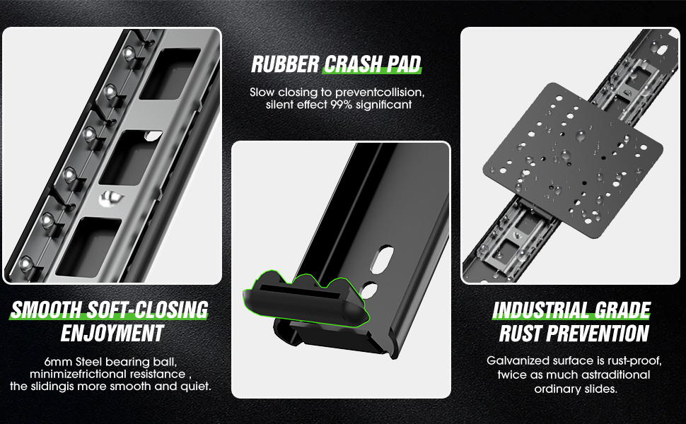 Durable and silent design: The slide rails are designed with solid steel balls and cushions to ensure durability and noise-free use. Smooth sliding enhances the overall experience of the cabinet door and makes the space more modern and stylish.