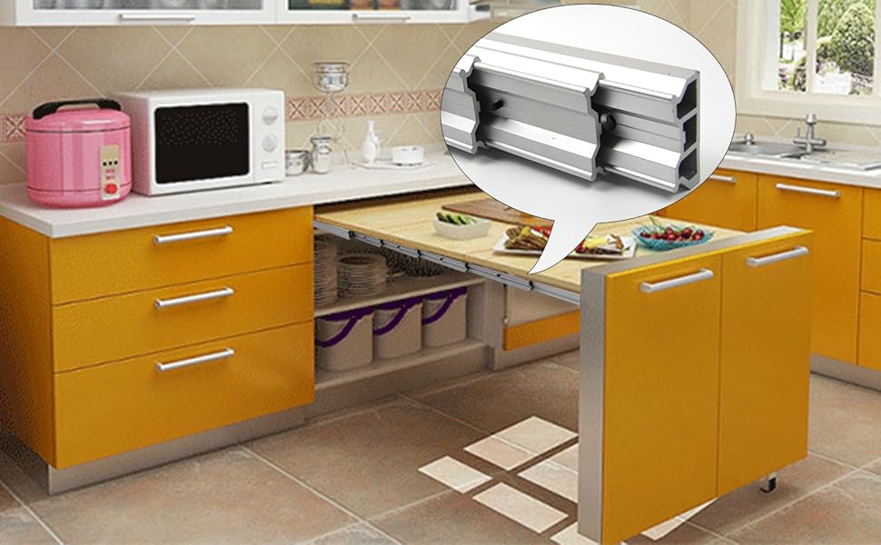 THICK ALUMINUM ALLOY: The 50 inch table extension slides is made of thick aluminum alloy as a whole, thickness 0.12"/3 mm,strong and sturdy, which is very different from the other bearings.Its surface is oxidized and its utmost load-bearing capacity can reach 160 pounds