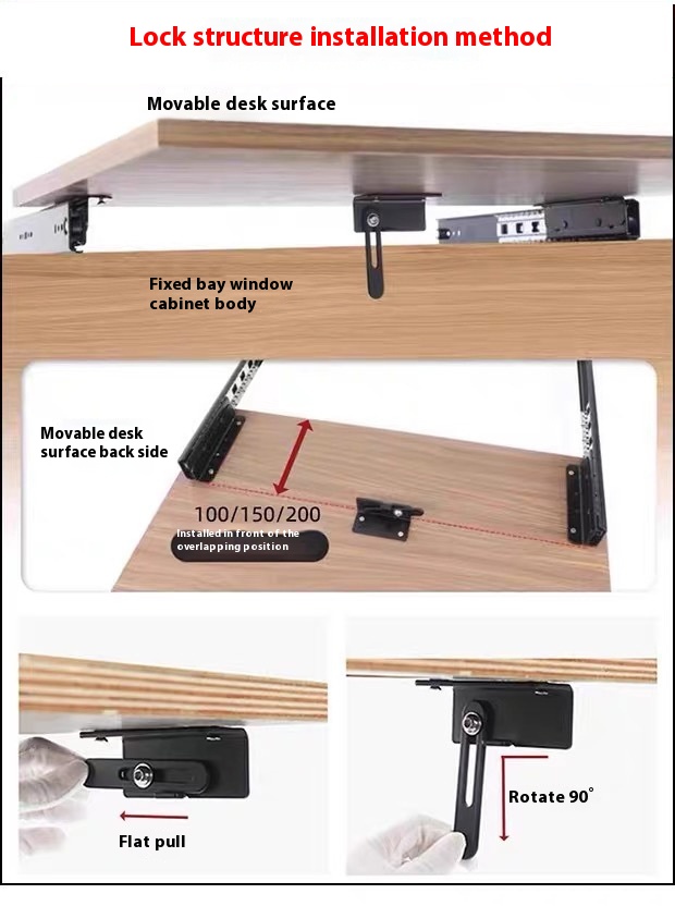 Heavy Duty Bay Window Sliding Track Desk Telescopic Slide Rail Drawer Track Desktop Invisible Pull Silent Rail Accessories